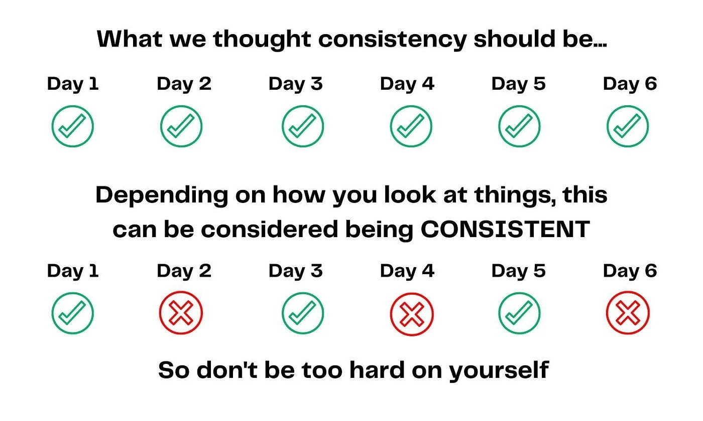 We often think consistency means showing up every single day without fail. But real-life consistency can look different, it’s about coming back, even after setbacks.